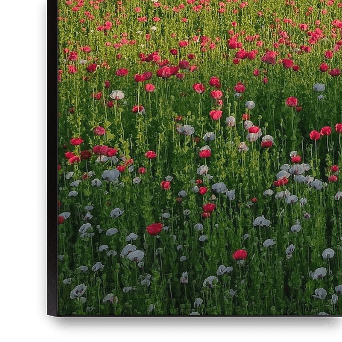 Buy this flower art Panoramic poppy field early in the morning by Moetwil en van Dijk - Fotografie on canvas, ArtFrame, poster and wallpaper, printed on demand in high quality.