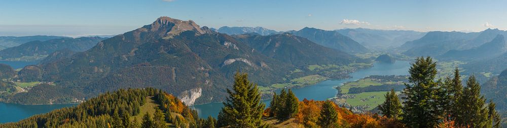 Panoramic view from the Zwölferhorn to the Wolfgangsee in autumn by Katharina Utsch