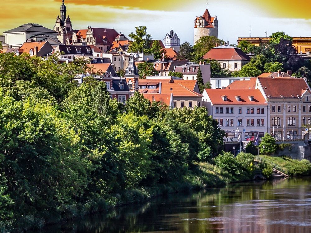 Panoramic view over the city of Bernburg in Saxony-Anhalt at sunset
