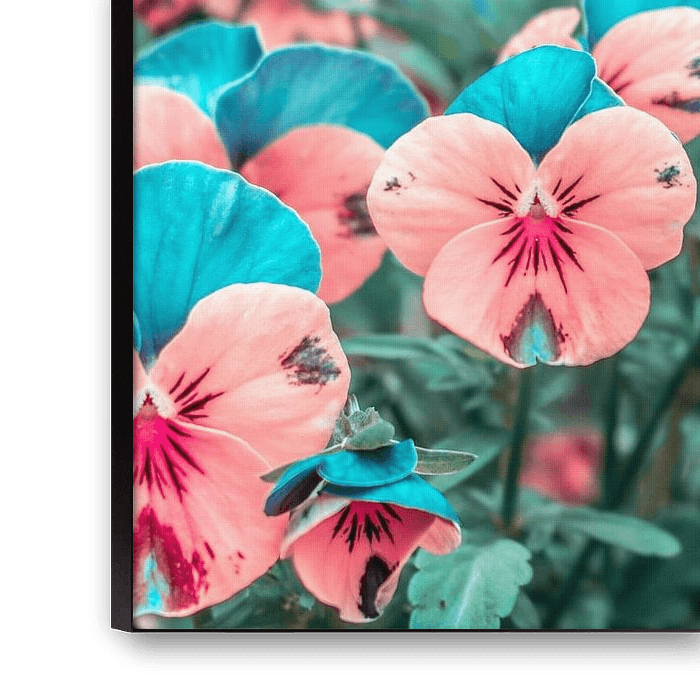 The inspiration for this work was the variety of colours that pansies can combine. I found the combination of bold colours and the soft, almost velvety texture of the petals particularly appealing. The aim was to capture this visual quality in a dense, almost abstract composition.