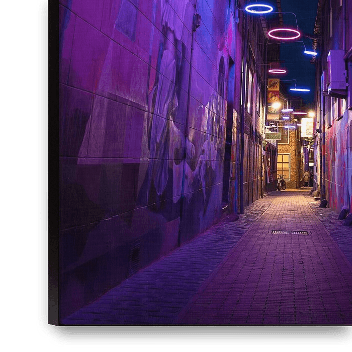The colourfully lit Papengang, with many murals and lights that constantly change colour, this alley in the entertainment district of student city Groningen has been transformed from an unsavoury passageway into an artistic highlight of the city.