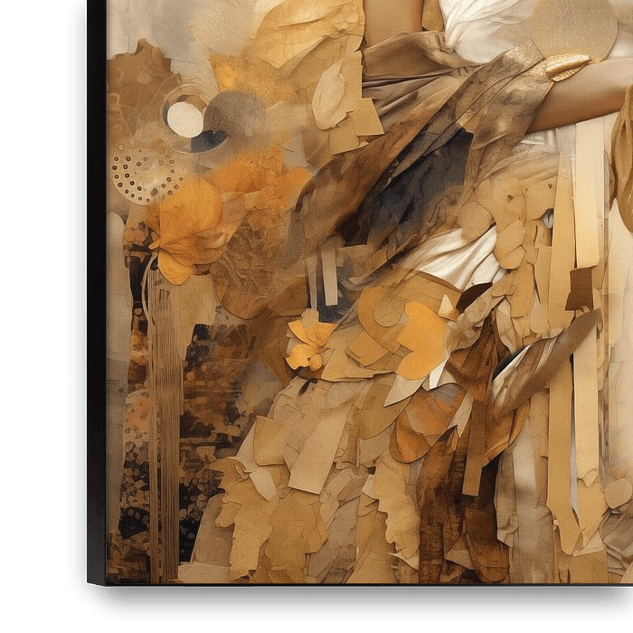 Fantasy collage portrait of a woman on paper in warm natural tones