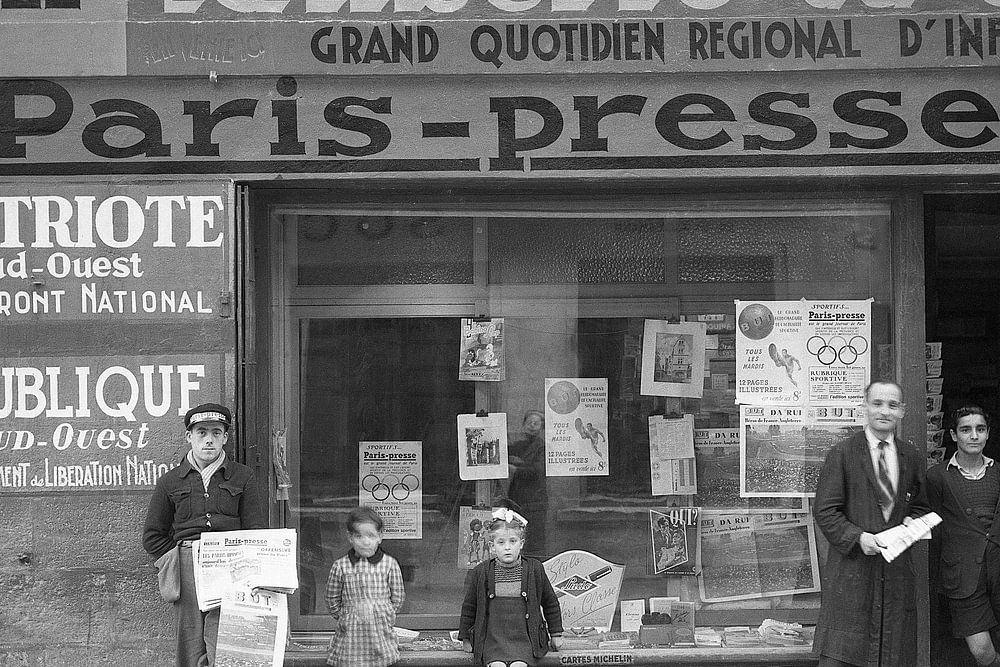 About "Paris, France, Paris Presse, newsagent, shop, newspapers, books 1946"