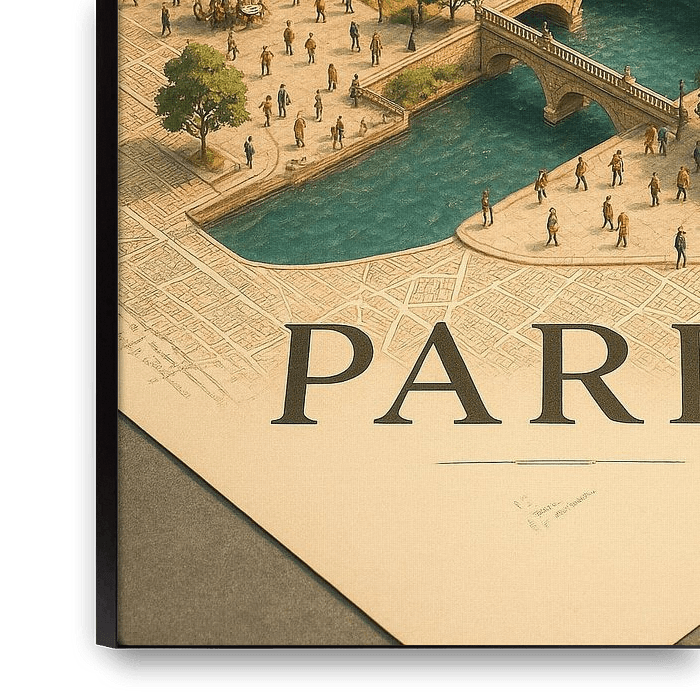 Buy this landscape artwork Paris Seine River & Architecture Miniature – Vintage City Poster by Travel Shop on canvas, ArtFrame, poster and wallpaper, printed on demand in high quality.