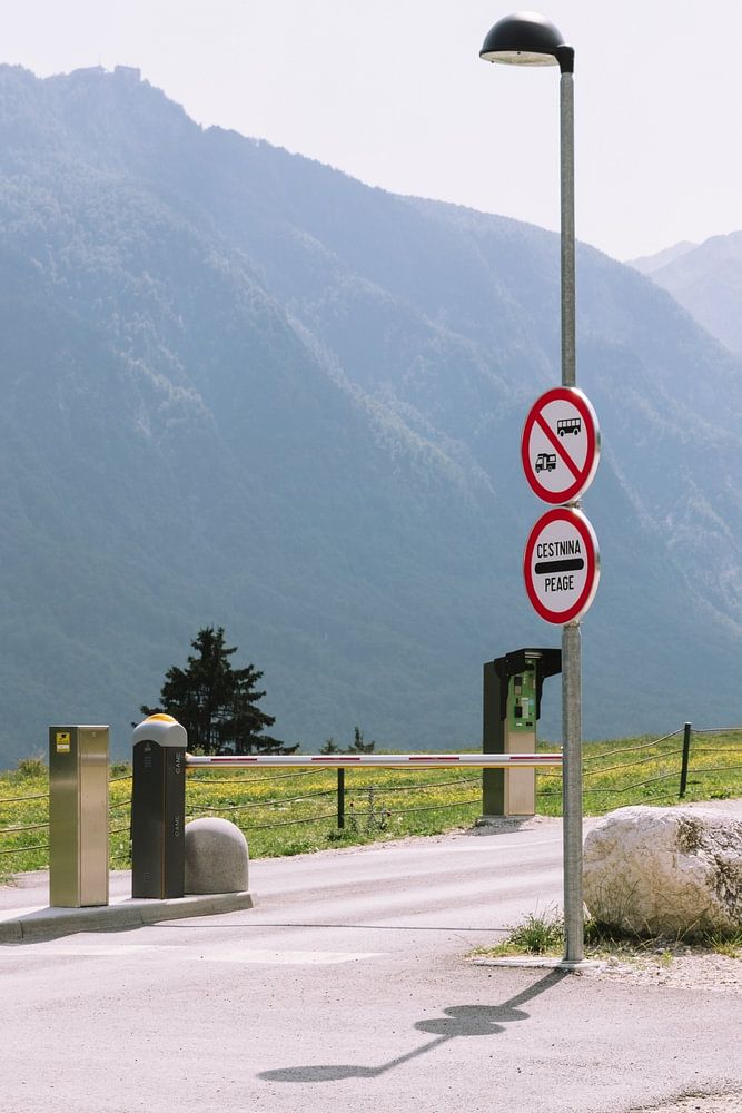 Slovenia has beautiful mountains. This photo was taken from our parking spot where we went hiking. The foreground contrasts nicely with the background. The modern bit man-made in great contrast to the natural area.