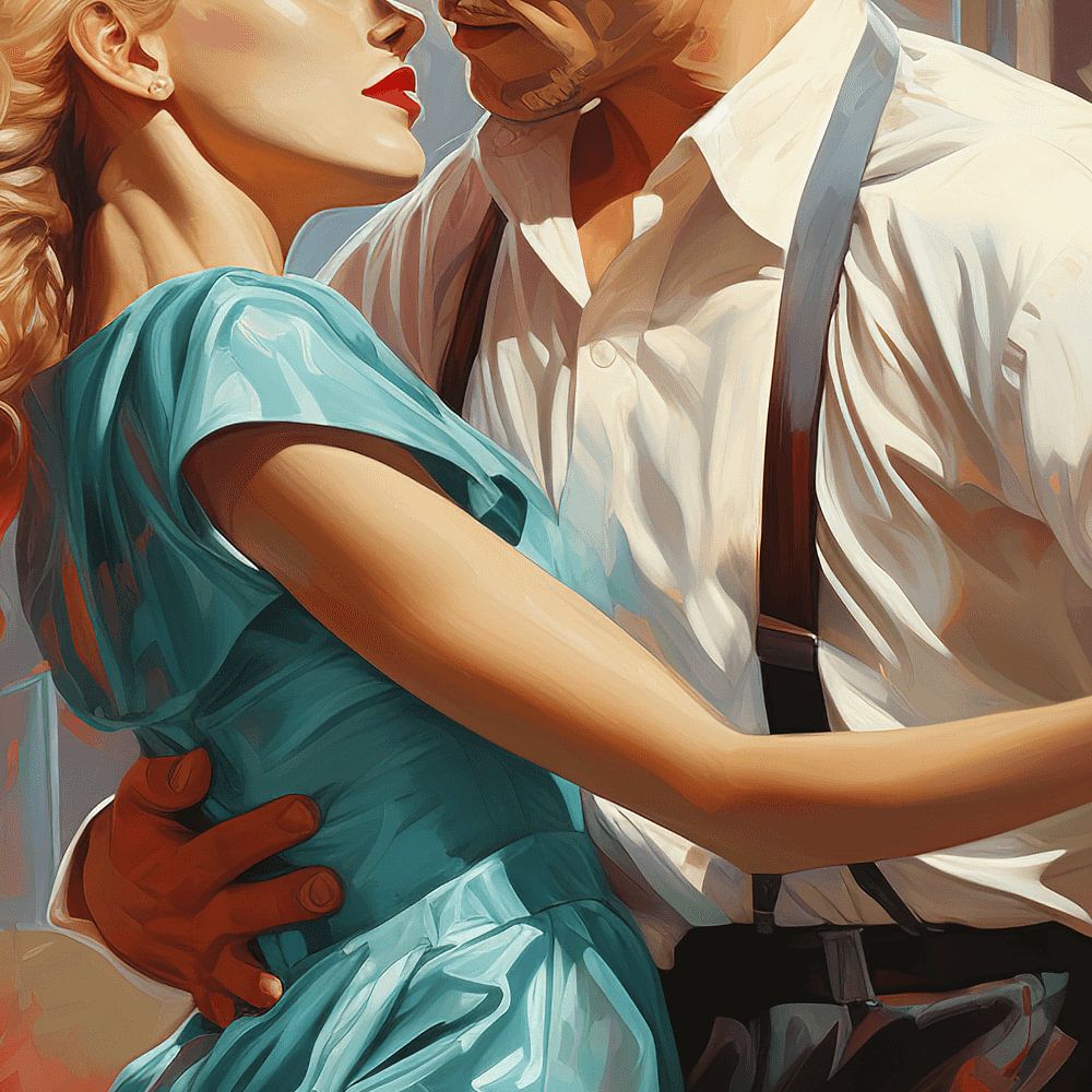 This painting from the 'Capturing Passion' collection immerses viewers in a passionate embrace frozen in time. The intensity of the moment is palpable, igniting the senses and evoking the fiery ardor of love and desire.