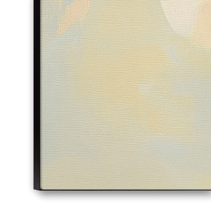 Details: abstract painting, modern art, pastel colours, circle shapes, serenity, light blue, soft orange, cream white, art collection, decoration