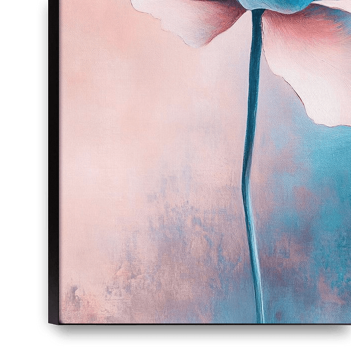 This sophisticated design depicts a beautiful flower in soft pastel colours, with blue and pink complementing each other harmoniously. The delicate brush strokes and subtle textures create a serene and dreamy look, perfect for bringing a calming atmosphere to any room. This artwork is an excellent choice for lovers of minimalist and…