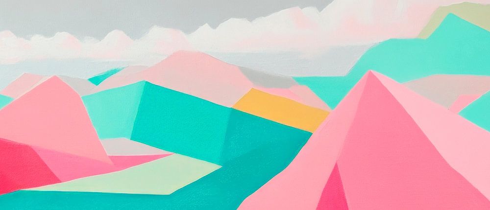 In soft shades of pink and mint, a geometric mountain landscape rises up under a delicate sky. The bold, angular shapes and harmonious colour palette give the room a fresh, inspiring atmosphere. Perfect for a modern living room that wants to radiate creativity and tranquillity.