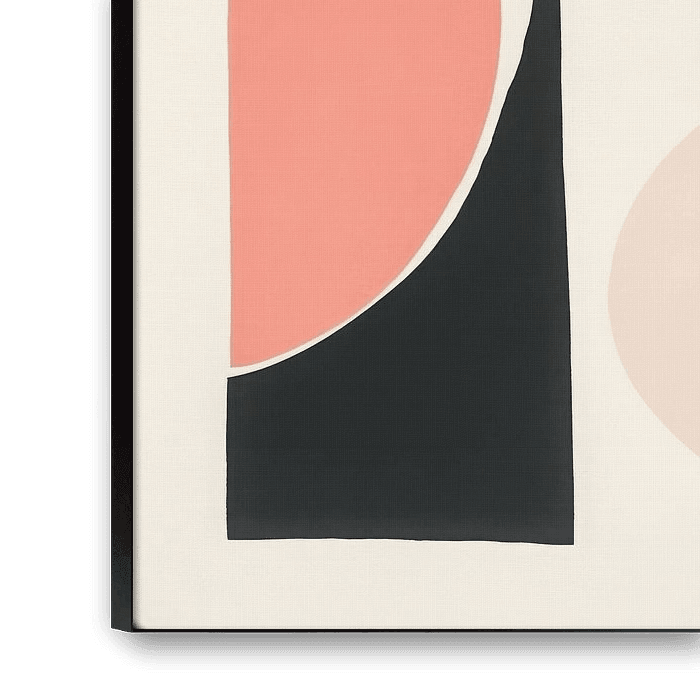 A soft, abstract work of art that captivates with its superimposed geometric shapes in delicate pastel colours. Semicircles, rectangles and organic polygons in yellow, pink, green, blue and black come together on a white background to form a harmonious composition. The shapes overlap subtly, creating depth and movement without losing their clear structure. This work embodies calm, lightness and modern aesthetics - a minimalist interplay of form and colour.