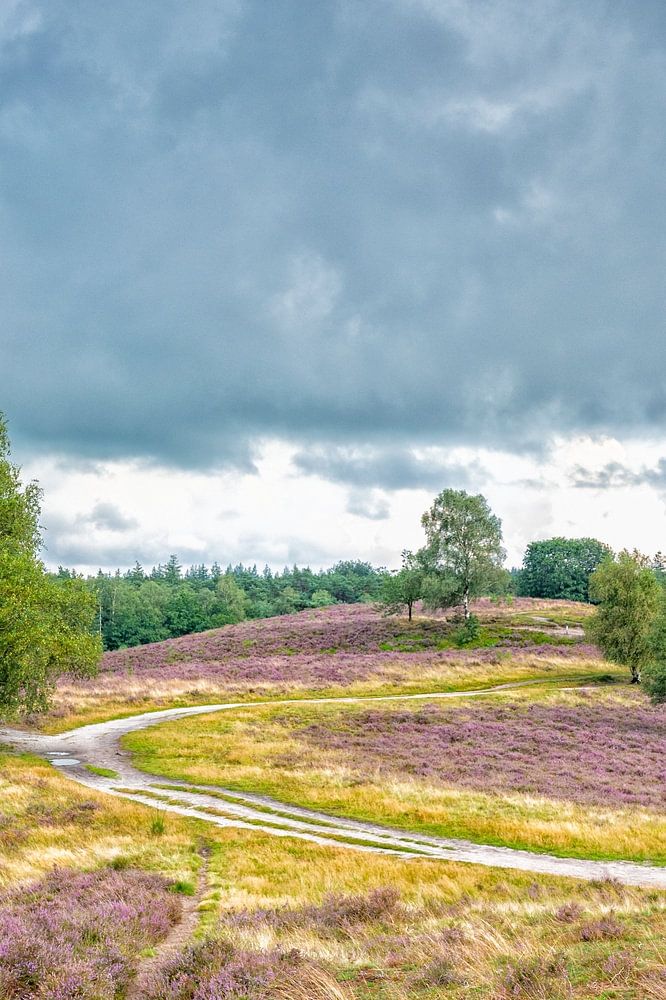 Buy this landscape artwork Path through blooming Heather plants with clouds above by Sjoerd van der Wal Photography on canvas, ArtFrame, poster and wallpaper, printed on demand in high quality.