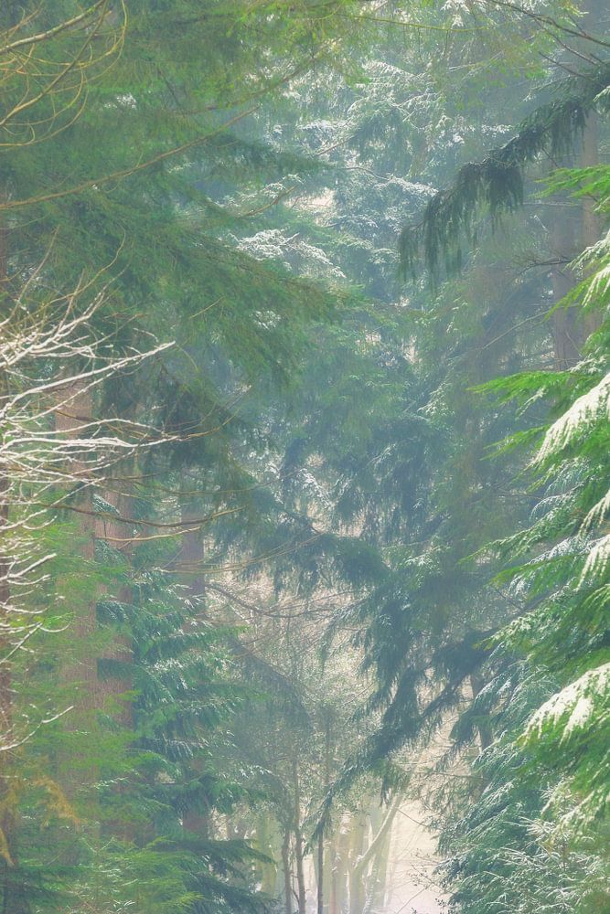 Path through pine trees in the Speulderbos forest in the Veluwe Nature reserve during winter by Sjoerd van der Wal Photography