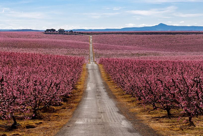 Peach Trees in Early Spring Blooming in Aitona, Catalonia