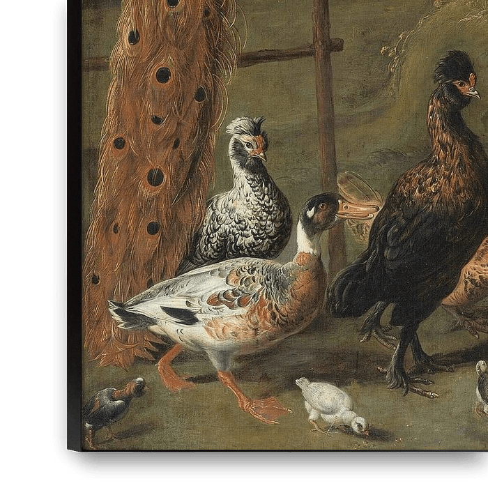 Buy Peacock and peahen on a perch, turkeys, a pheasant and poultry by a well, Adriaen van Utrecht as a reproduction on canvas, ArtFrame, poster and wallpaper, printed on demand in high quality.
