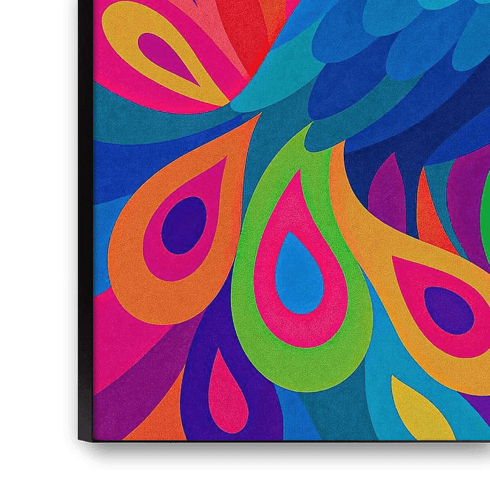 An explosion of colour and energy! This abstract peacock is painted in bright shades of pink, orange, yellow and blue. The work exudes joy, freedom and expression. The flowing lines and harmonious shapes create movement and dynamism. Ideal for those who dare to embrace colour and want to give their interior an artistic twist.