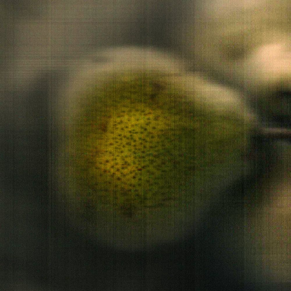 An initial experiment in digital art, created using a handheld scanner rather than a camera. This abstract still life depicts three pears in a glass fruit bowl, captured in an unusual and surprising way. As the scanner builds up the image line by line, an alienating effect is created that straddles the line between photography, painting…