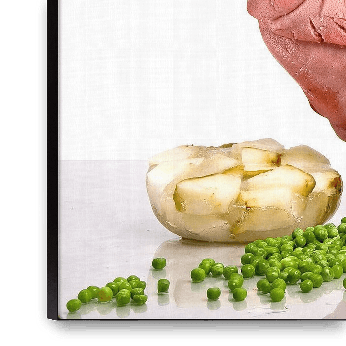 Erwten Soep is a sculpture made on the inspiration of Irving Penn. It shows the ingredients of Peas Soup. A humorous image with a horror touch.