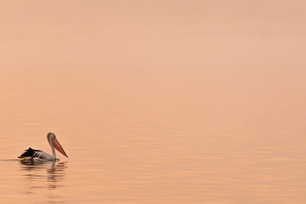 Buy the photo Pelican during sunrise by Thomas van der Willik on canvas, ArtFrame, poster and wallpaper, printed on demand in high quality.