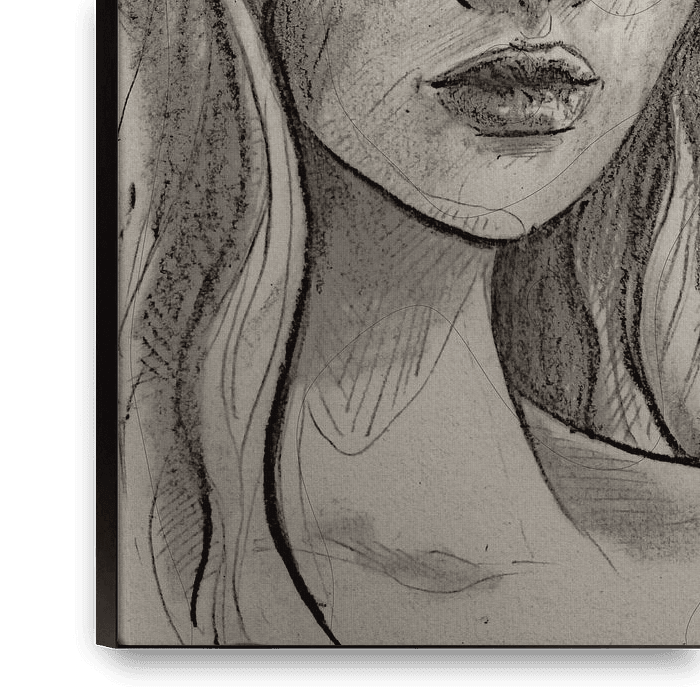 This portrait was created with pencil and charcoal on paper. This young woman's portrait has been digitally optimised. This woman looks diagonally to the left, she has a serious and thoughtful expression in her face.