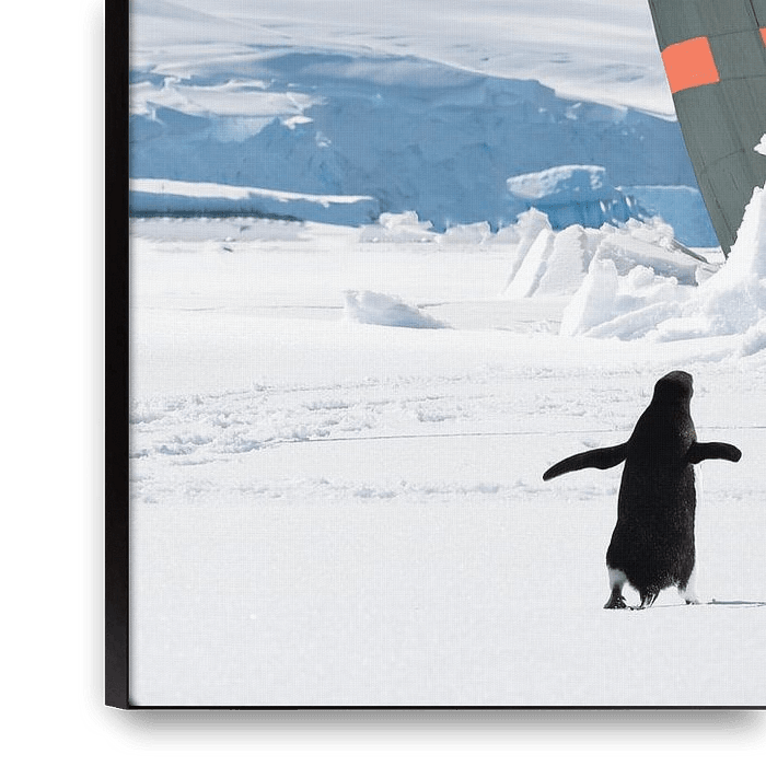 Buy this landscape artwork Penguin for Cruise Ship Bow in Antarctica by Nancy Pauwels Photo on canvas, ArtFrame, poster and wallpaper, printed on demand in high quality.