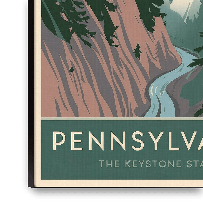 Buy this landscape artwork Pennsylvania Vintage Travel Poster by Poster Art Shop on canvas, ArtFrame, poster and wallpaper, printed on demand in high quality.
