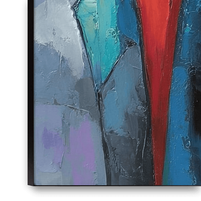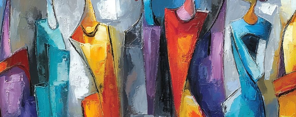 Details: people, abstract painting, colours, orange, blue, purple, modern art, group, vibrant,…