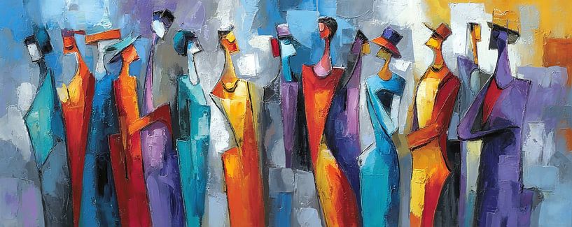 Buy this abstract artwork People Colours | Gathering in Bright Hues by ARTEO Paintings on canvas, ArtFrame, poster and wallpaper, printed on demand in high quality.