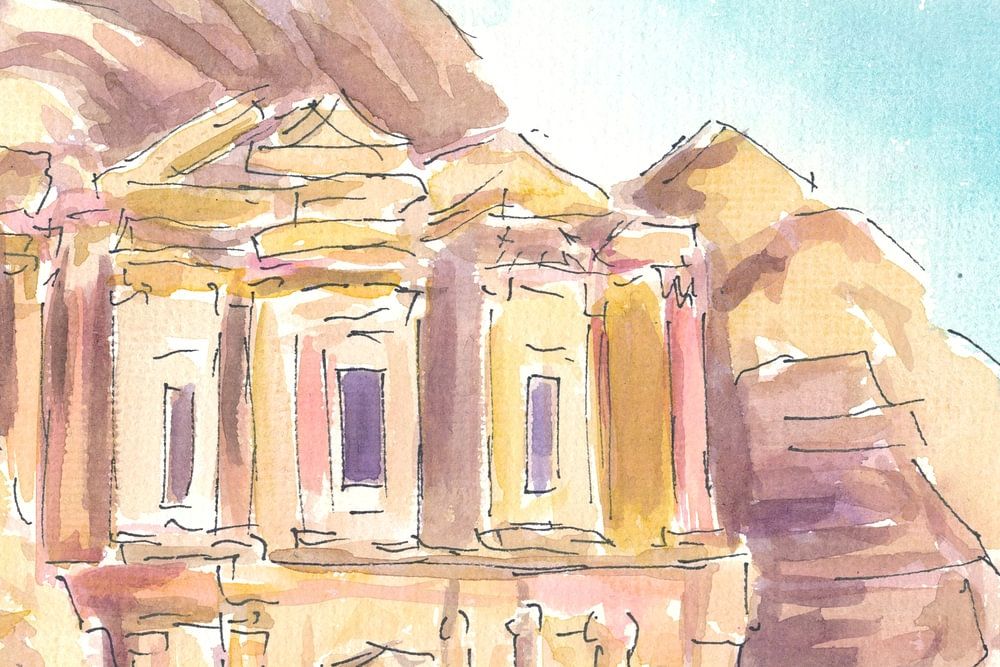 Buy this painting Petra Jordan rose red and skirt cut by Markus Bleichner as a reproduction on canvas, ArtFrame, poster and wallpaper, printed on demand in high quality.