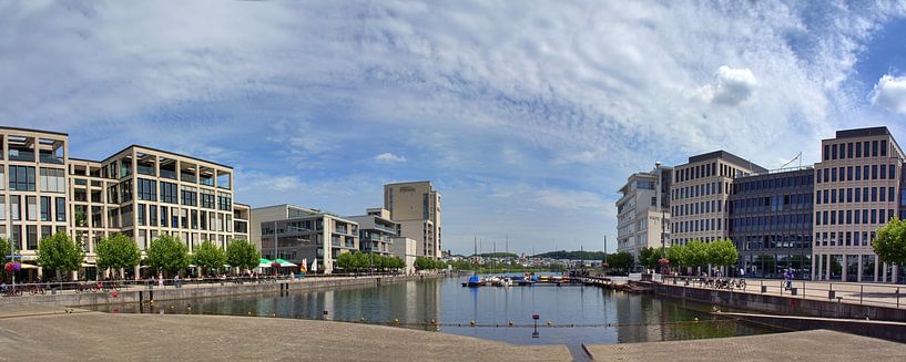 Panoramic photo of the Phönixsee lake in Dortmund Hörde, a popular excursion destination.