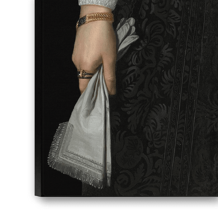 I digitally enhanced the painting a little here and there, not too much, not too little, and cropped it on a plain black background so that all attention is focused on the beautiful details of the clothes, gloves and…