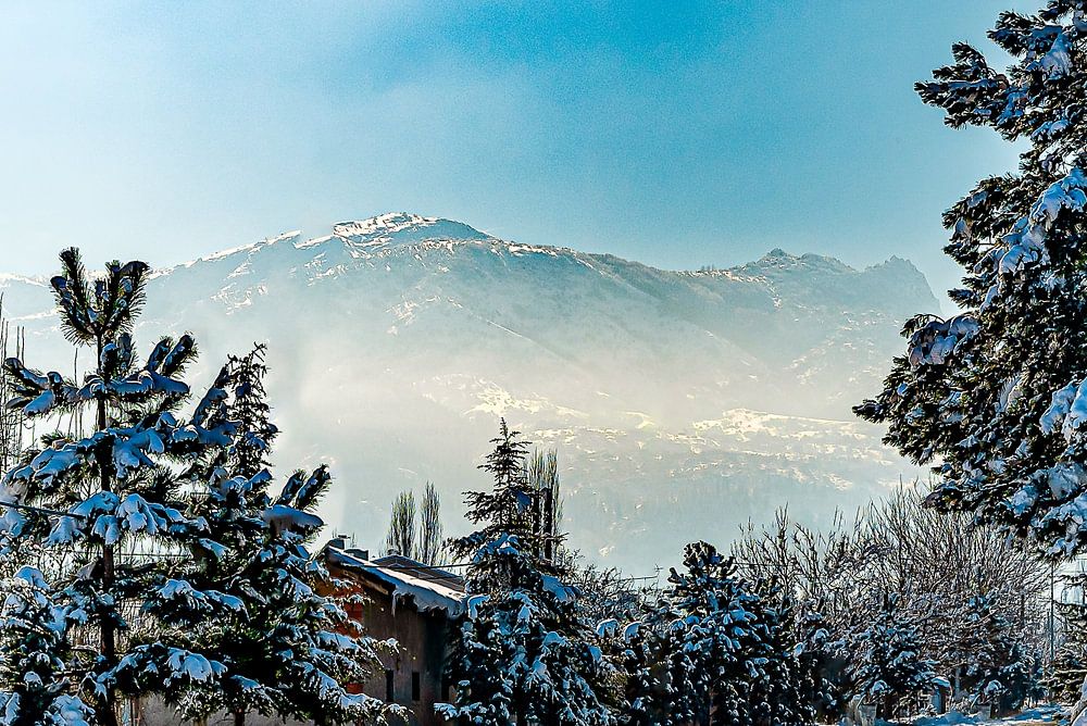 A picturesque image of a road in Afyonkarahisar, on the way to Erkmen. A fairytale winter wonderland
