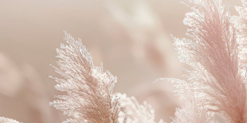 Gentle Pampas grass is highlighted against a soft, pale pink background giving off a tranquil and delicate vibe. The composition evokes a sense of serenity and simplicity, with the light diffusing through the feathery textures of the plant. Enjoy an imposing dreamy landscape impression.