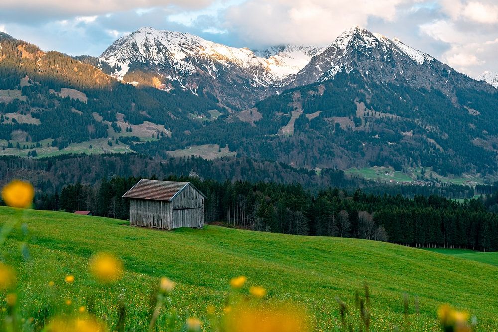 Picturesque view of the spring Allgäu and its mountains by Leo Schindzielorz