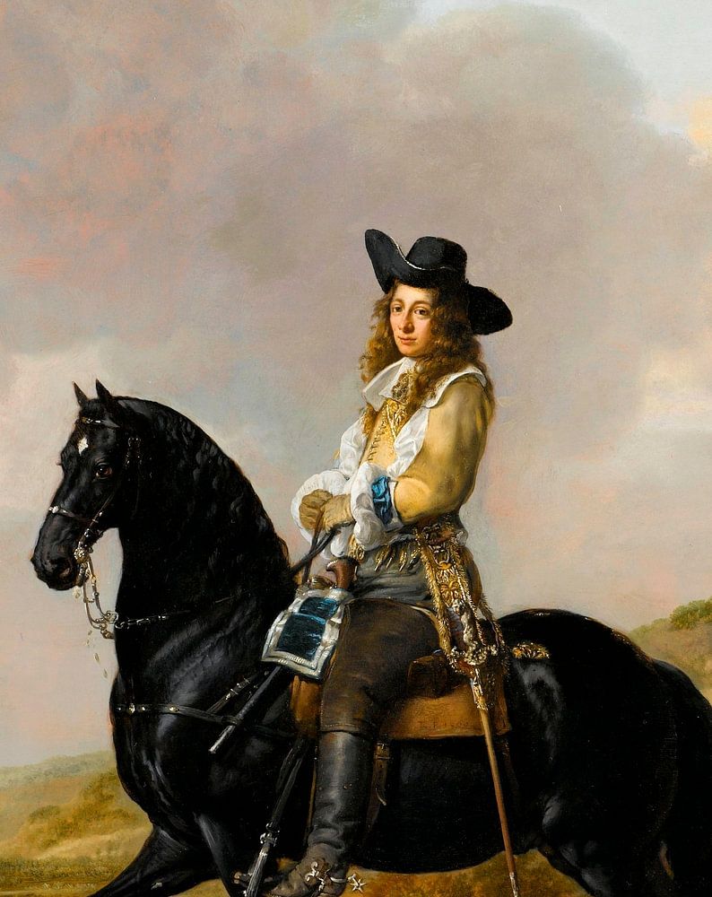 Equestrian portraits were traditionally the reserve of princes. Accordingly, in the Netherlands very few equestrian portraits were made, except for the court. Only a handful of burghers had themselves immortalized on horseback. Pieter Schout was one such citizen who assumed a princely air. He was bailiff – administrative officer – of Hagestein on the River Lek.