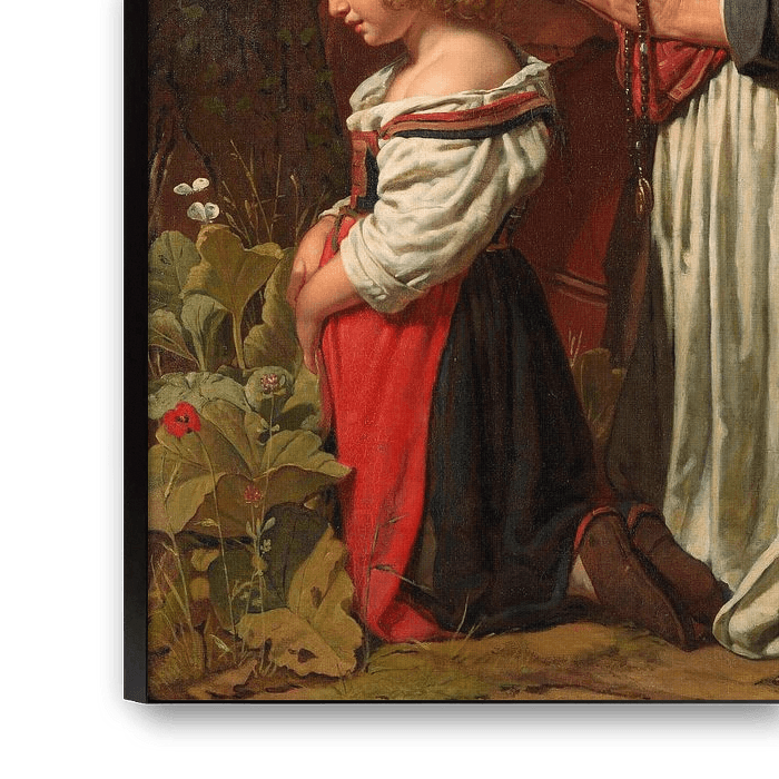 In 1821 Kruseman travelled to Italy. According to this picture’s inscription, he painted it in Rome. It combines both Dutch and Italian painting traditions. The two older figures still reflect the realistic Dutch style, while the young people are idealized Italian peasant types. The small Marian altar in the tree is an exact copy of a work by the Renaissance painter Raphael, Kruseman’s great role model.
