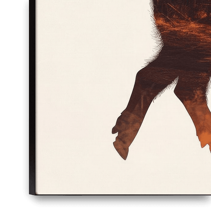 A majestic wild boar, interspersed with gentle forest landscapes and warm earthy tones. This harmonious combination of nature and animal conveys a sense of freedom and adventure. Ideal for a living room, where it acts as a lively accent and stimulates conversation about the beauty of nature. An eye-catcher for nature lovers!
