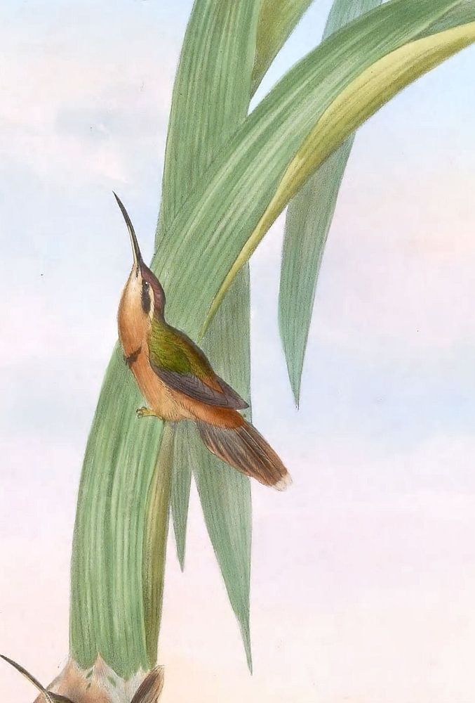 Pigmy Hermit (Phaëthornis pygmæus), John Gould This being the most diminutive species of the genus Phaëthornis yet discovered, the term pygmæus is a very appropriate name for it. This illustration has been restored to its original vibrancy by enhancing colors and removing unwanted marks. A monograph of the Trochilidæ, or family of humming-birds was published between 1849 and 1887 by English ornithologist John Gould. This monumental work depicts and describes all the known species of hummingbirds at the time - comprising 418 lithographic plates and information on 537 species."