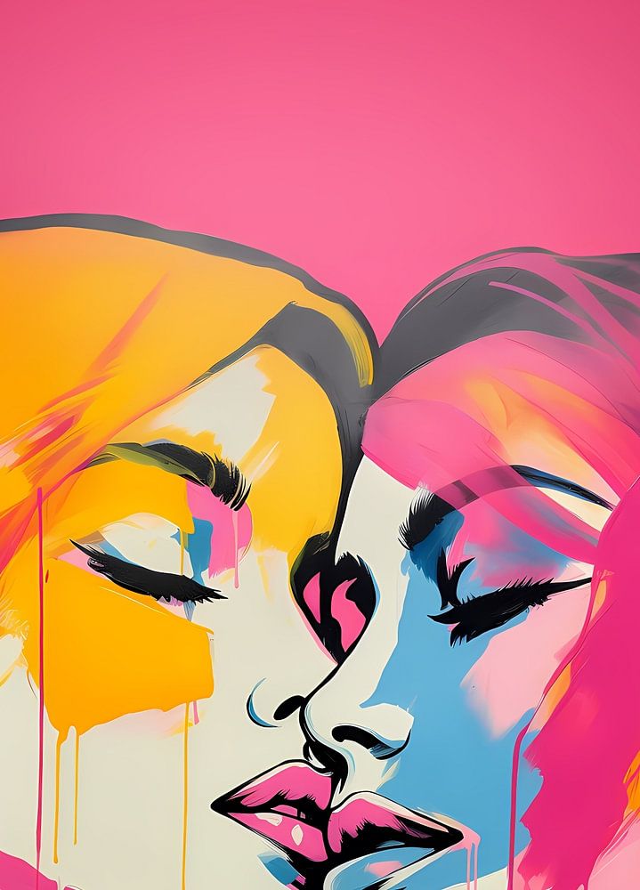 This Pink Pop Art painting of kissing women is an ode to love and femininity. Experience the vibrancy of 1950s and 1960s Pop Art with this outdoor canvas called Pink Revolution. The pink hues and bold contrasts make it an ideal choice for autumn.