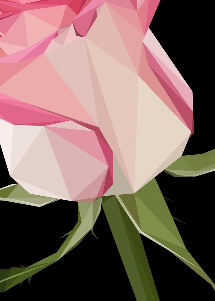 Pink Rose Flower Low Poly Art with black background in abstract illustration style. I want to describe flowers in another ways. Flowers in abstract style of art, abstract illustration.