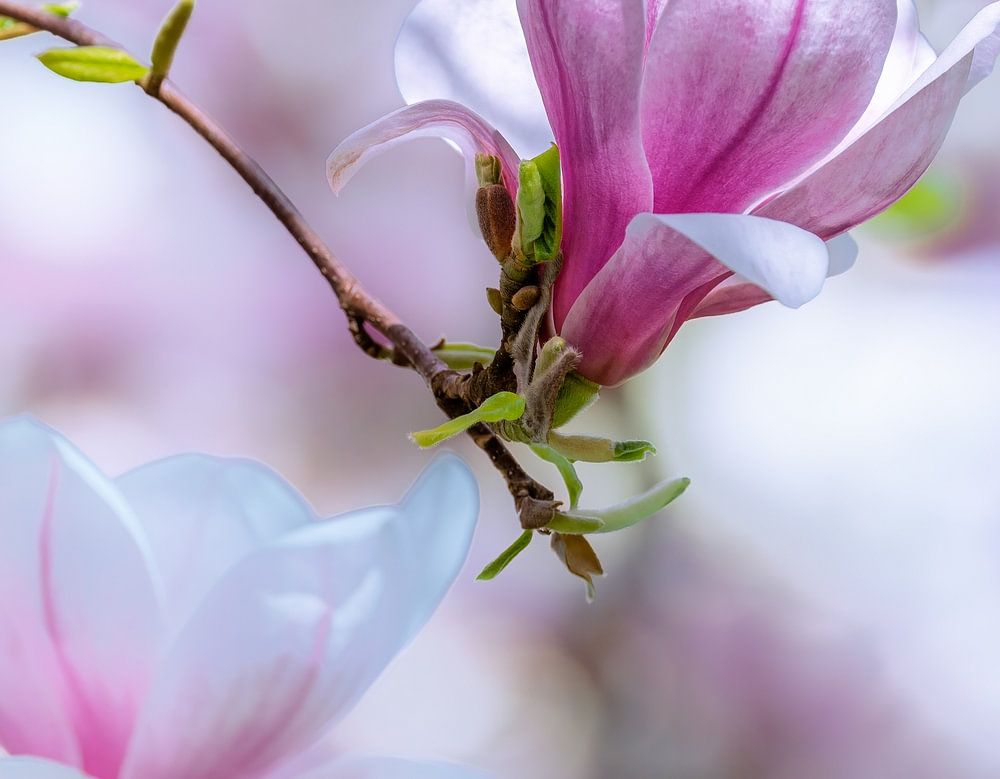 Buy this flower art Pink and white blooming magnolia flowers by ManfredFotos on canvas, ArtFrame, poster and wallpaper, printed on demand in high quality.
