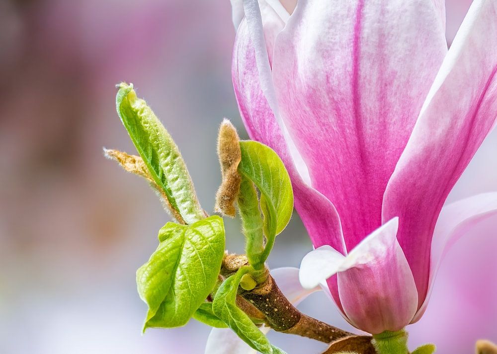 Buy this flower art Pink and white blooming magnolia flowers by ManfredFotos on canvas, ArtFrame, poster and wallpaper, printed on demand in high quality.