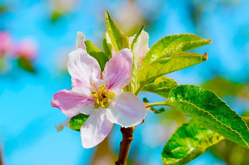 Pink apple blossom under blue sky by Ivonne Fuhren-van de Kerkhof