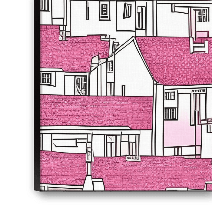 Colourful prints, abstract, figurative illustrations depicting houses, canal houses from various countries and cities.