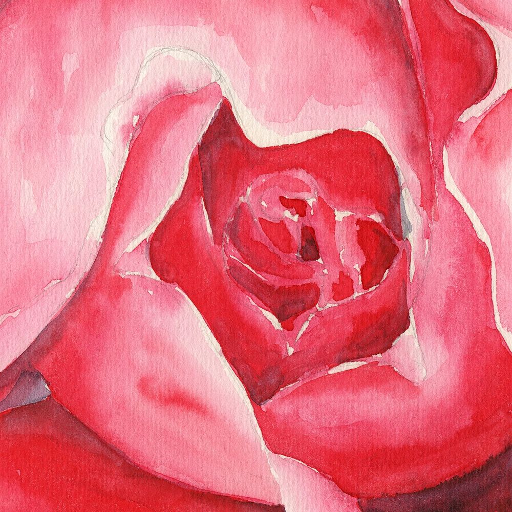 Pink Rose is a watercolour painting in a contemporary square format hand-painted by the artist Karen Kaspar.