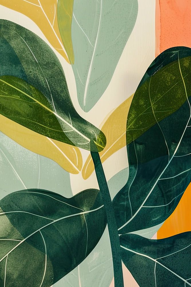 Plant Japandi painting - Plant abstract decoration. Minimalist style.