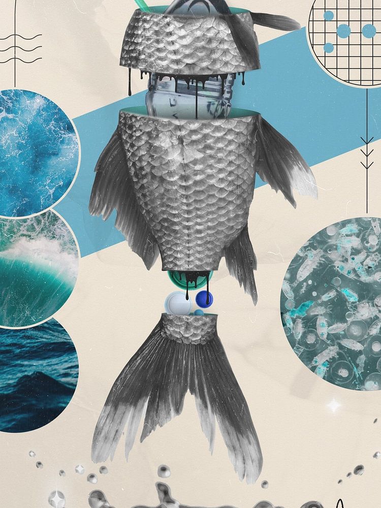 To portray this visually, I used a fish, plastic, water and a (graphic) visual for microplastics.