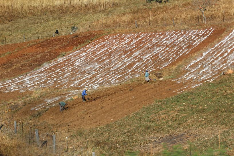 Boeren zijn bezig op hun velden in Swaziland.