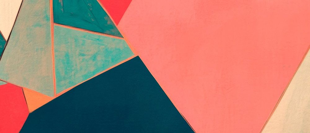 A harmonious interplay of geometric shapes in soft red tones and cool shades of blue and cream creates a captivating atmosphere. The dynamic arrangement of the triangles promises creative inspiration and enlivens any room. Perfect for the home office or living room, where art and functionality come together.