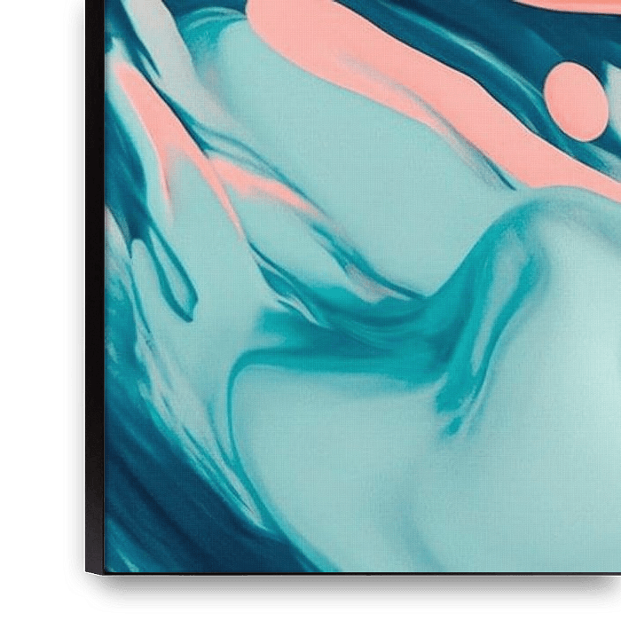 Soft pastel colours in harmony combine to create a lively dance of turquoise, pink and dark blue. The flowing shapes have a calming effect and invite you to dream. Perfect for the bedroom, this artwork creates a relaxing atmosphere that invites you to linger and unwind - an authentic expression of style and serenity.