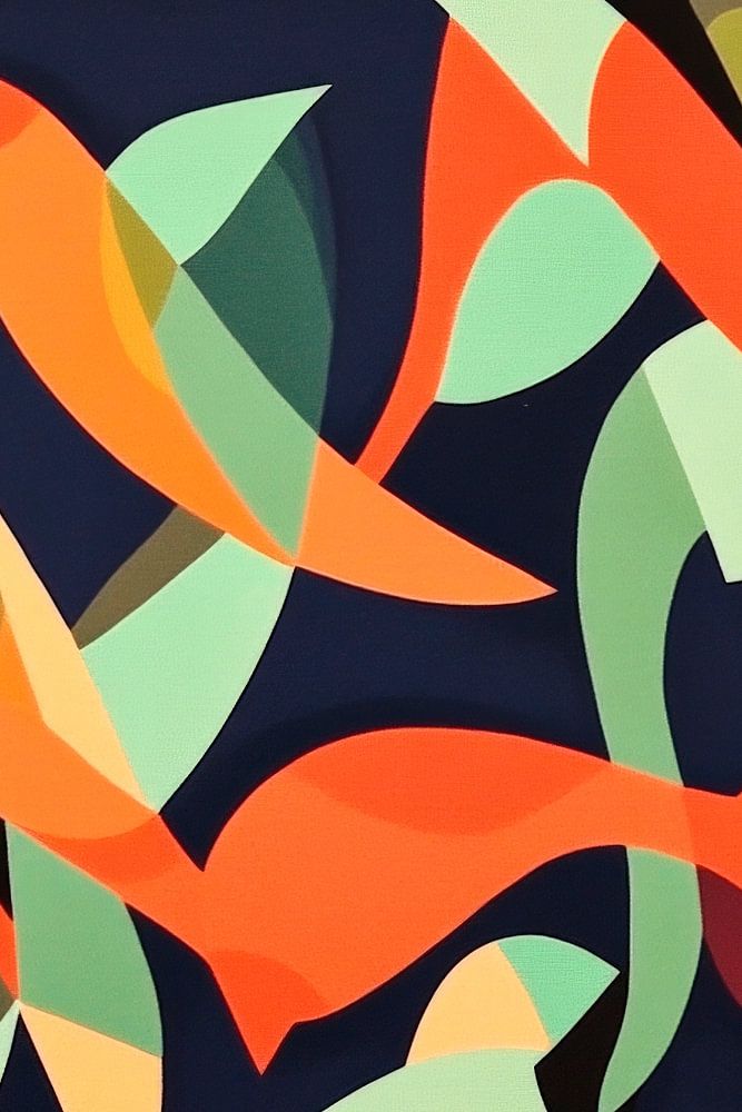 Drifting over the waves while bright orange and soft green fish swim together in a harmonious dance. The rounded shapes and deep dark blue background give this artwork a calming depth. Ideal for a modern living room, it creates an inviting atmosphere and stimulates the imagination.